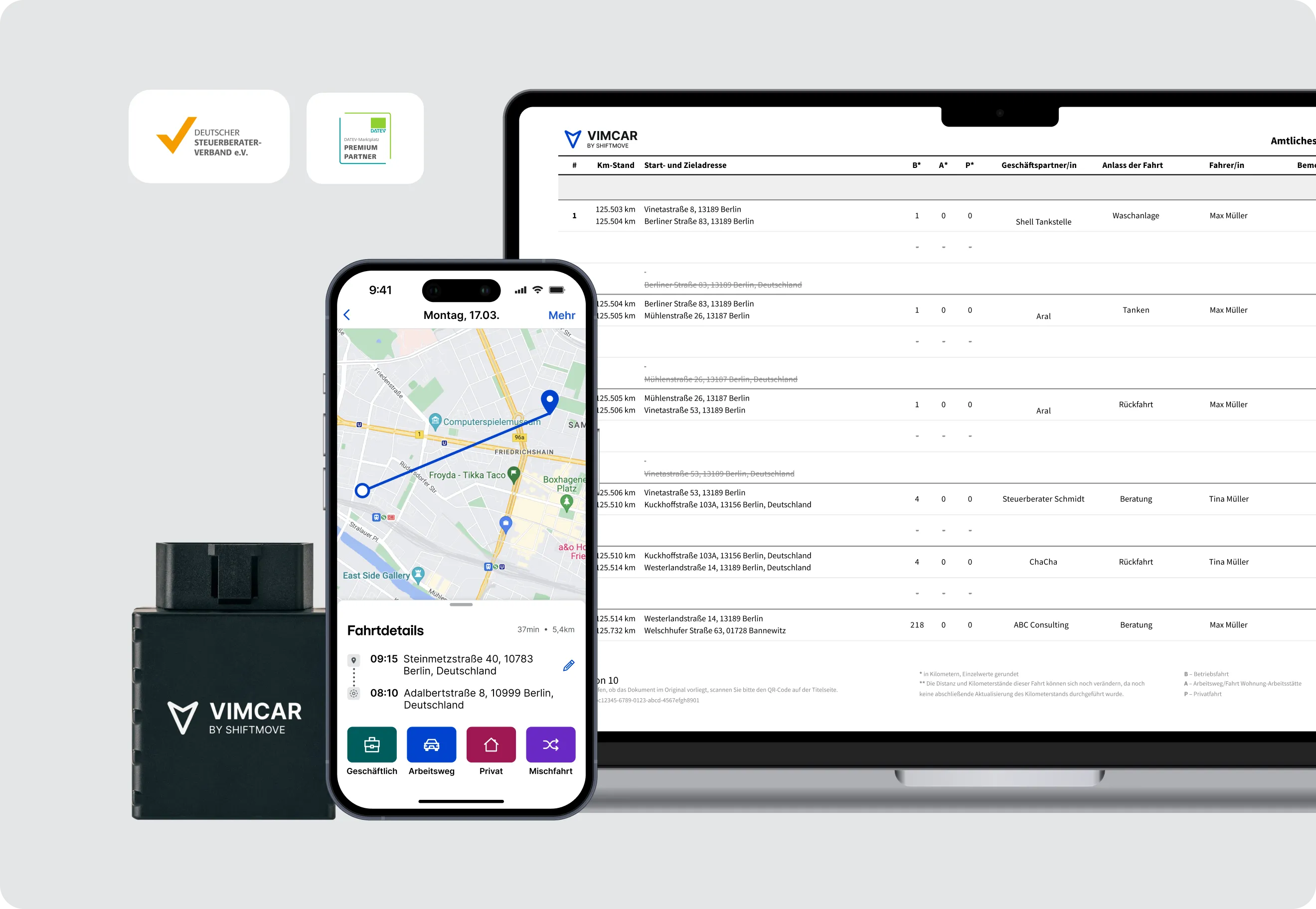 Manuelle Fahrtenbücher sind fehleranfällig und zeitaufwendig. Wer diese nicht zeitnah und lückenlos ausfüllt, kann Probleme mit dem Finanzamt bekommen. Das Vimcar Fahrtenbuch hingegen ist rechtssicher und vereinfacht die Arbeit auf Fahrerseite. Damit Sie endlich Fahrtenbuch ohne Stress führen können.